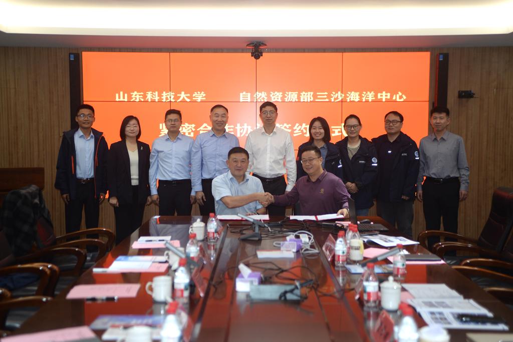 在海洋测绘领域的学科建设与发展成效,朱建国介绍了海洋学院的建设情况,张丞杰则对三沙海洋中心的职能定位与发展布局作了介绍。双方围绕科研协同创新、高层次人才培养等议题展开深入探讨,并现场签订紧密合作协议,为进一步合作奠定坚实基础。
