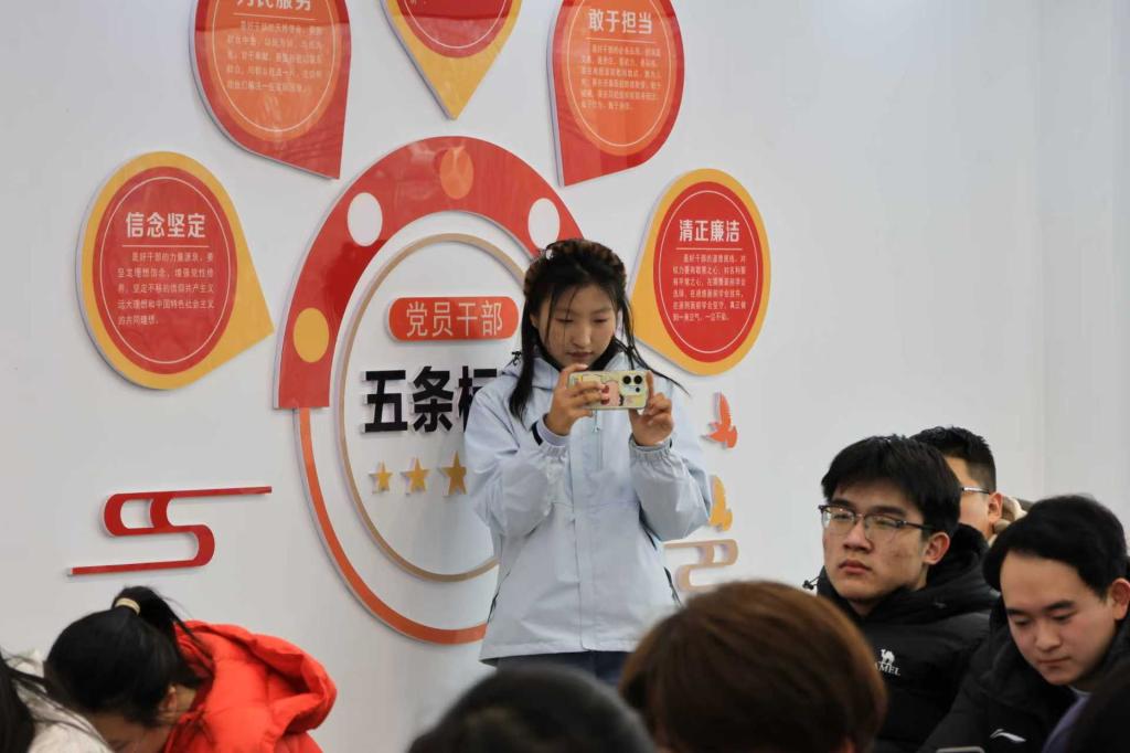 在日常工作,前辈们待我十分友善,还经常给我分享零食,让我很快消除了陌生感,工作跟我想象的差异很大,轻松很多,她们平时不会给我安排繁重的工作,只是一些文件的收取,这让我有更多自己的自由时间去学习技能知识,同时我还积极参与家乡宣传的动图制作。但在与前辈的日常交往中,我更加理解与明白作为政务工作者最重要的是什么,事实上他们的工作内容不是我们刻板印象中的高高在上的遥不可及的,而是切切实实的从小事做起,围绕着为人民服务展开的。同时,作为宣传委员也参与了大学生见面会的拍照宣传工作,事实上这是我第一次参与拍照宣传工作,这项工作极具挑战,要在有限时间内抓拍到满意的照片,需要提前熟悉流程、快速捕捉瞬间,避免重复,在见面会现场,为了抓拍到嘉宾发言的精彩瞬间,我蹲守了20分钟,最后终于拍到一张满意的照片。