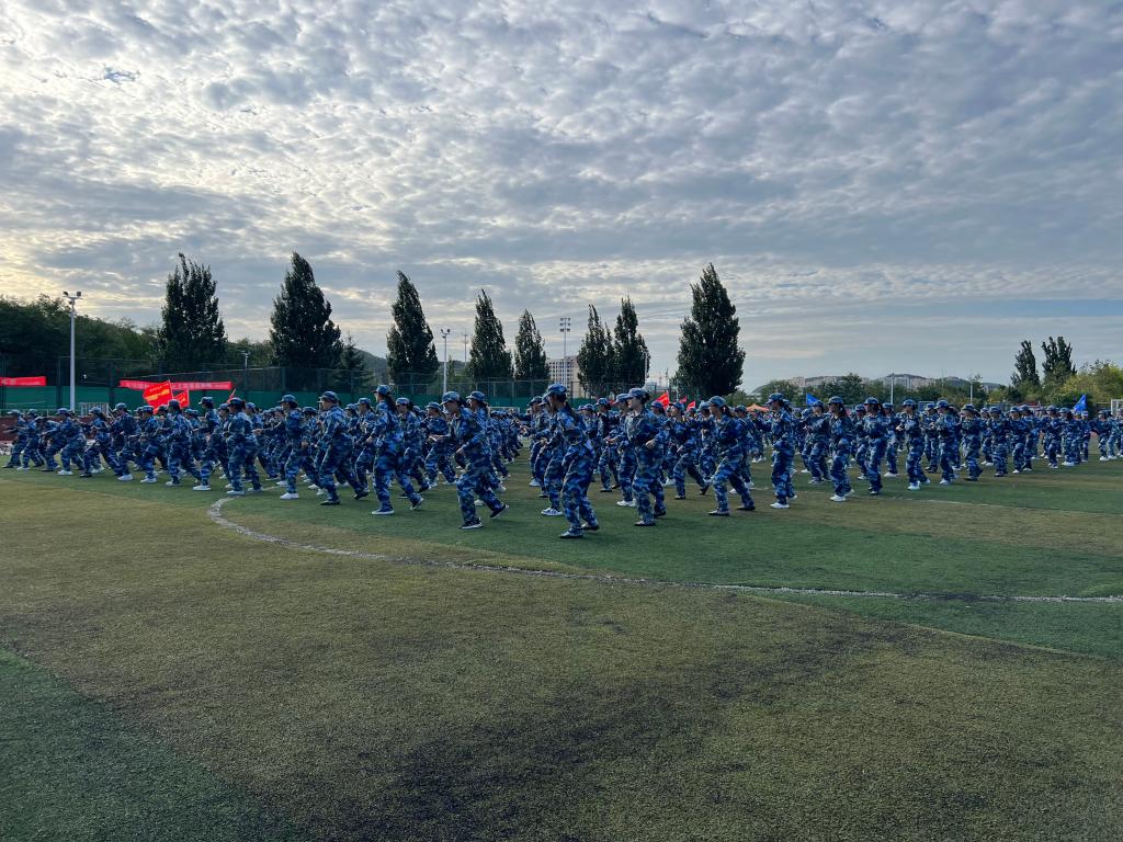 分列式训练是军训中的“重头戏”。烈日下,同学们反复练习军姿、转体、齐步走和正步走。从最初的步伐凌乱到如今的整齐划一,每一滴汗水都见证了他们的成长。响亮的口号、铿锵的步伐、挺拔的身姿,不仅展现了团队的默契与凝聚力,更彰显了青春的蓬勃力量。